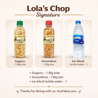 fried rice, jellof rice, salad, chicken, fruits , swallow and soups, wines , water and lots more .