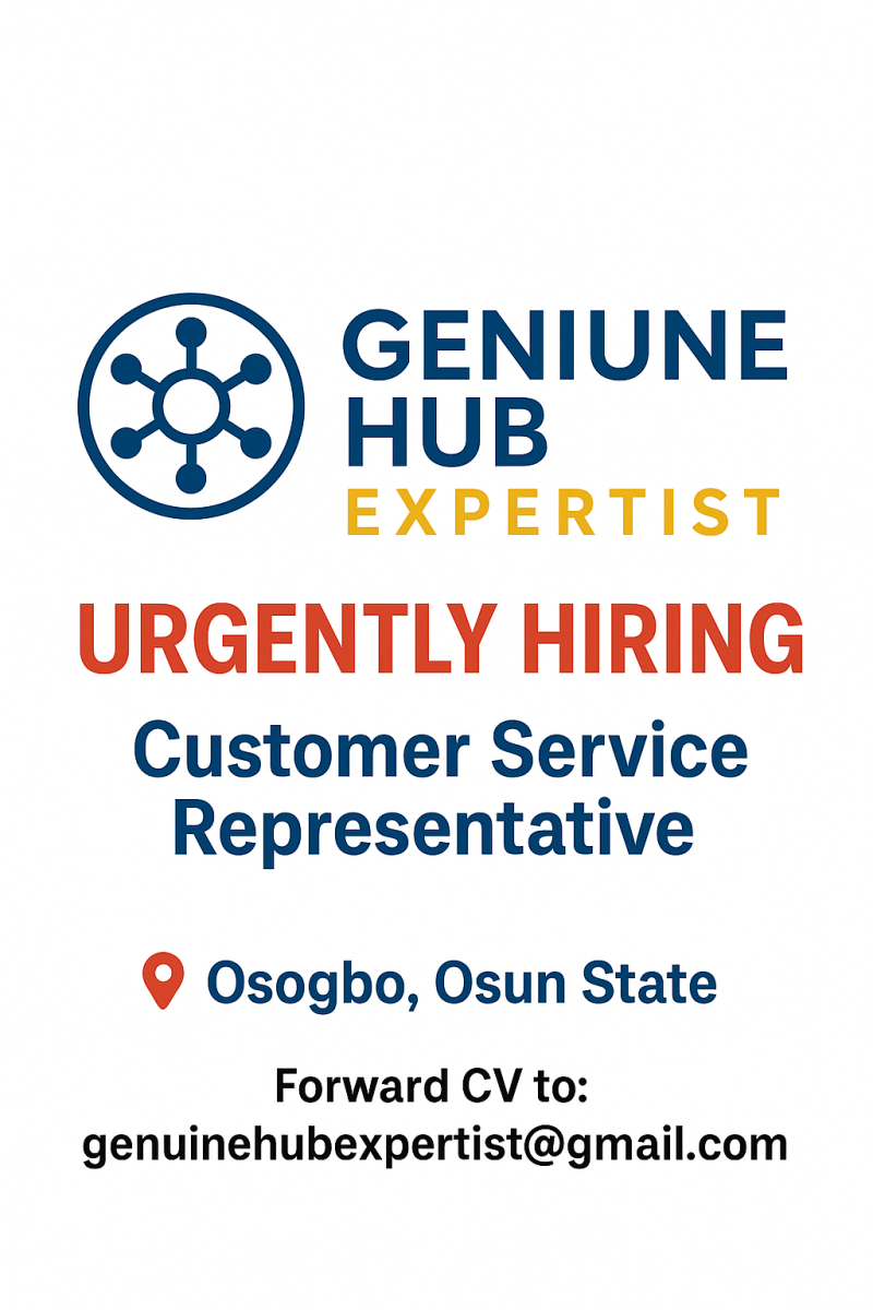 We are hiring a Customer Service Representative whose will be able to handling our customer complaint
