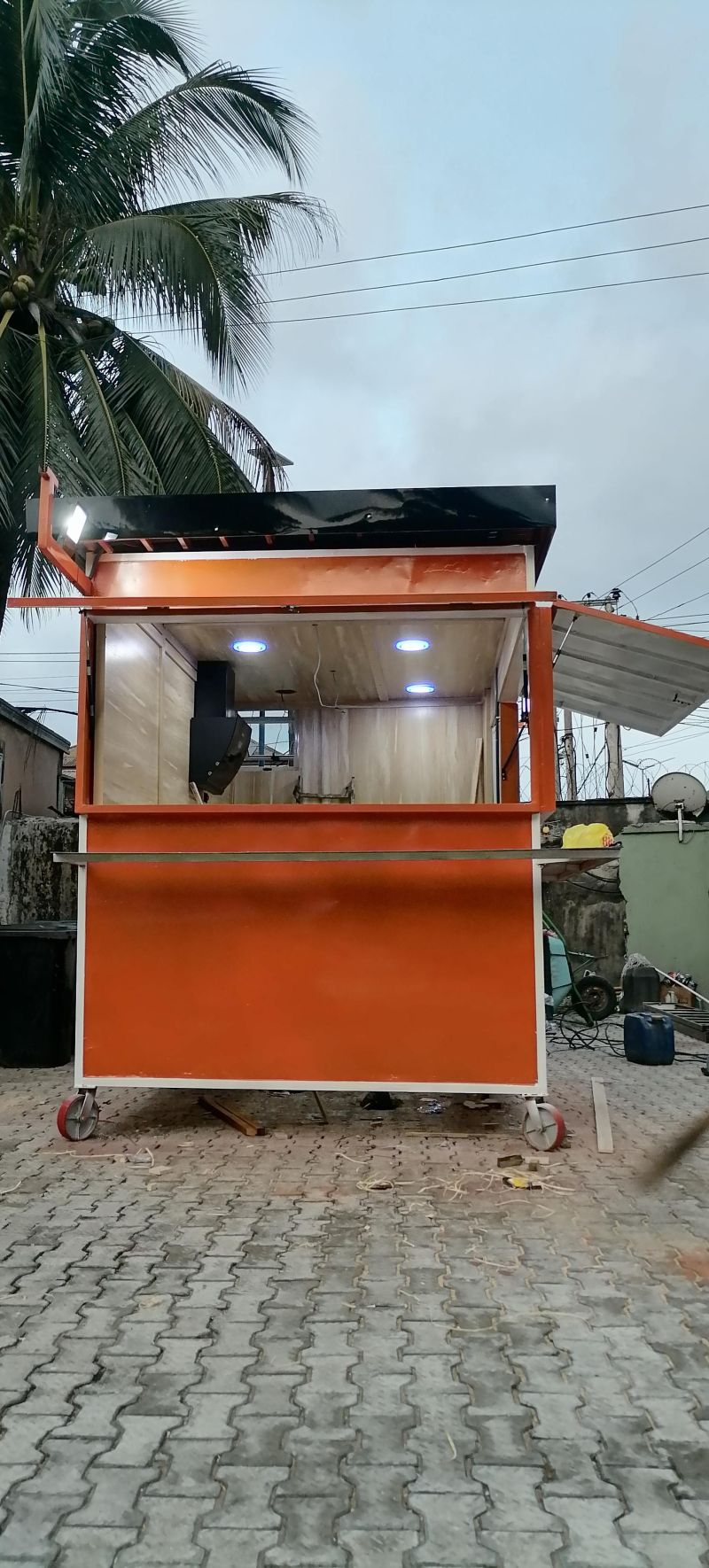I make mobile shop for street food and shawarma shop pizza stand and indomie stand ice cream stand with complete electrical installation inside all u are working on it is to connect to ur supply line and water supply line